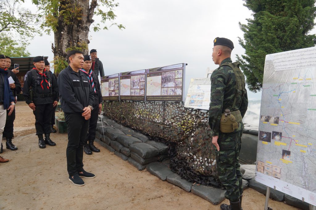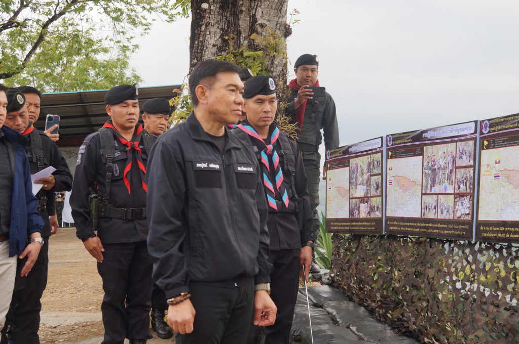 วันที่ 24 กุมภาพันธ์ 2568 ณ ฐานปฏิบัติการกิ่วฮุง อำเภอแม่อาย จังหวัดเชียงใหม่ พลตำรวจโท ภาณุรัตน์ หลักบุญ เลขาธิการ ป.ป.ส. พร้อมด้วยพลโท กิตติพงศ์ ชื่นใจชน แม่ทัพน้อยที่ 3 ในฐานะ ผบ.นบ.ยส.35 นายธันวา ผุดผ่อง ผอ.ปปส. ภาค 5 และคณะ ลงพื้นที่ตรวจเยี่ยมให้กำลังใจเจ้าหน้าที่ชุดปฏิบัติการสกัดกั้นยาเสพติดชายแดนภาคเหนือในพื้นที่จังหวัดเชียงใหม่ และจังหวัดเชียงราย หลังเกิดเหตุปะทะอย่างต่อเนื่องกับกลุ่มขบวนการลำเลียงยาเสพติด