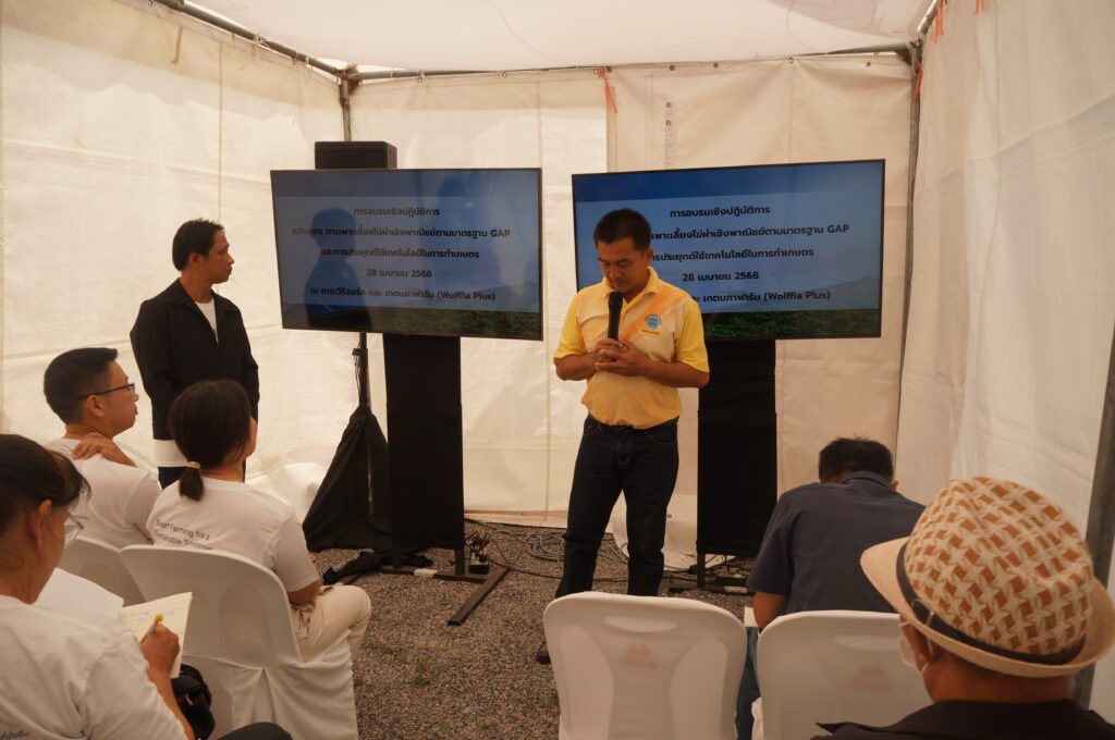 ที่คาระวีรีสอร์ท อำเภอแม่ทา จังหวัดลำพูน นายอนุวัฒน์ กำแพงแก้ว ผู้อำนวยการกลุ่มงานวิจัยพืชอนาคต (กพอ.) เดินทางมาให้ความรู้แก่เกษตรกรที่สนใจ และเปิดอบรมการผลิตผำเชิงพานิช ให้มีมาตรฐาน GP โดยกรมวิชาการเกษตรมาให้ความรู้เกี่ยวกับการเพาะเลี้ยงผำ จะเพาะเลี้ยงอย่างไรให้ได้มาตรฐานสำหรับการแปรรูป หรือการส่งออกไปต่างประเทศ โดยปัจจุบันผู้ที่สนใจมีการตอบรับที่ดีในกลุ่มเพาะเลี้ยงและกลุ่มผู้ที่รักสุขภาพเป็นทางเลือกนึงสำหรับอาหารที่มีโปรตีนสูง ส่วนผู้ที่สนใจสามารถมาสอบถามข้อมูลทุกขั้นตอนได้ไม่ว่าจะเป็น พันธุ์ของผำ การปลูก หรือมาตรฐานก็สามารถสอบถามหน่วยงานภูมิภาคของกรมวิชาการเกษตร ไม่ว่าจะเป็นสำนักวิจัยและพัฒนาการเกษตรที่มี 8 เขตททั่วประเทศ รวมถึงศูนย์วิจัยและพัฒนาการเกษตรที่อยุ่ตามภูมิภาคต่างๆ ทั่วประเทศ ซึ่งภาคเหนือก็ที่ผู้ที่สนใจติดต่อมาทางกรมฯ มากพอสมควร
