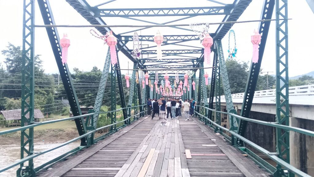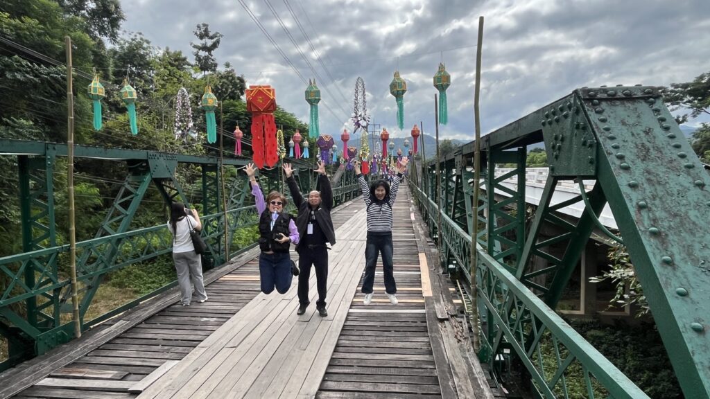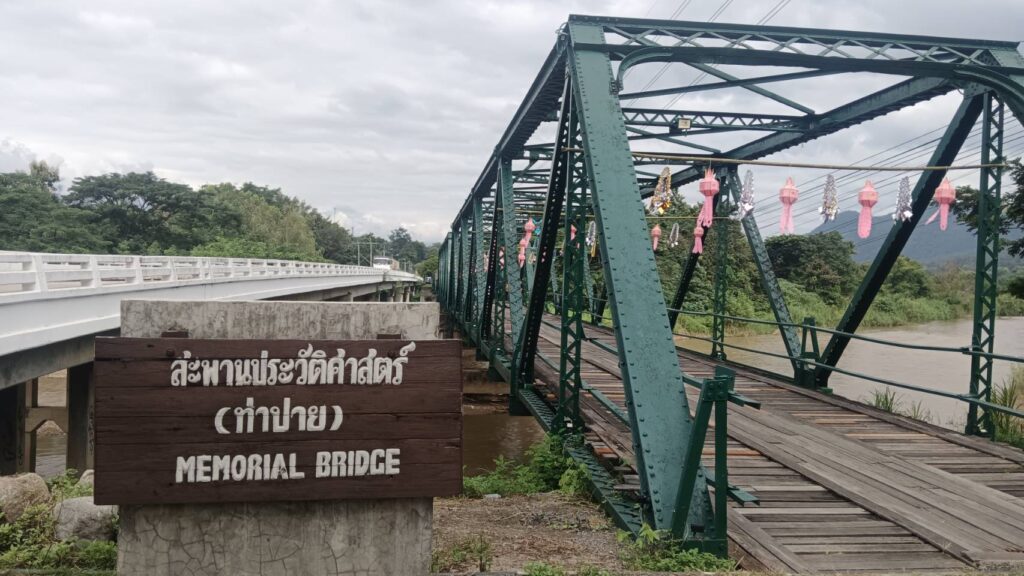 ช่วงเช้าพาเที่ยวอำเภอปาย ชมสะพานประวัติศาสตร์ท่าปาย (Ta Pai Memorial Bridge) สะพานแห่งนี้เปรียบเสมือนประตูสู่ปาย เป็นสะพานที่มีโครงเหล็กสีเขียวเข้มปูพื้นด้วยไม้ทอดข้ามแม่น้ำปาย มีอายุราวหนึ่งร้อยปี สร้างขึ้นในช่วงสงครามโลกครั้งที่สอง