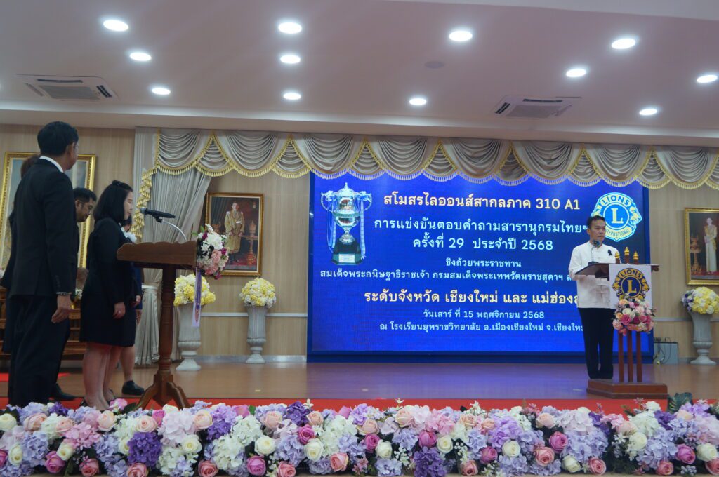 วันนี้(15 พย.68) ที่ศูนย์วิทยาบริการดารารัศมี ภายในโรงเรียนยุพราชวิทยาลัย อำเภอเมือง จังหวัดเชียงใหม่ นายศิวะ ธมิกานนท์ รองผู้ว่าราชการจังหวัดเชียงใหม่ เป็นประธานในพิธีเปิดการแข่งขันตอบคำถามจากหนังสือสารานุกรมไทย สำหรับเยาวชนฯ ครั้งที่ 29 พื้นที่จังหวัด เชียงใหม่ และจังหวัดแม่ฮ่องสอน