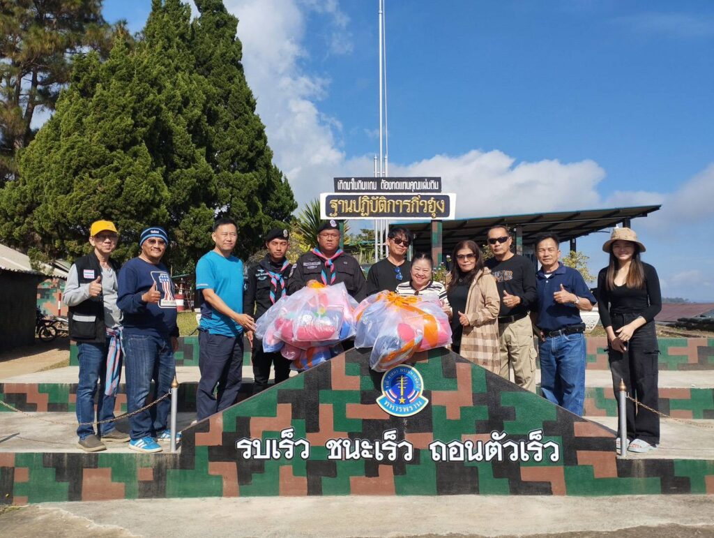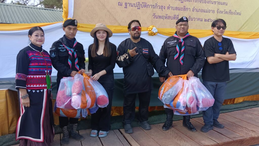 นอกจากนั้นยังได้มอบสิ่งของให้กับเจ้าหน้าที่ทหารพราน โดยทาง จ.ส.อ.อนุวัฒน์ อินทำ กองร้อยทหารพรานที่ 3201 ฐานปฏิบัติการกิ่วฮุง ต.มะลิกา อ.แม่อาย จ.เชียงใม่ รับมอบเครื่องกันหนาวด้วย