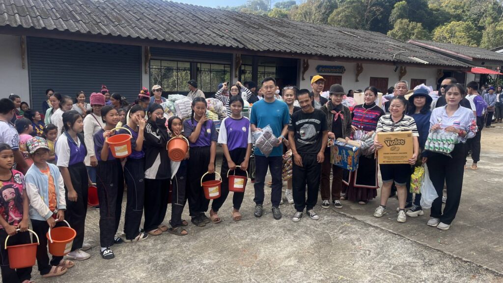 โดยชมรมผู้สื่อข่าวจังหวัดเชียงใหม่ พร้อมร้านลาบต้นยาง รวบรวมสิ่งของจากผู้ประกอบการห้างร้าน และเจ้าของธุรกิจต่างๆ และลูกค้าร้านลาบต้นยาง เพื่อหาปัจจัยและสิ่งของ ได้จัดซื้อเสื้อกันหนาว จัดทำเป็นถุงยังชีพ ให้เด็กๆและชาวบ้าน พร้อมจัดหาอุปกรณ์การแพทย์ เครื่องวัดความดัน และชุดเครื่องอ๊อกซิเจน จำนวน 3 ชุด เพื่อส่งมอบให้ อบต.ดังกล่าว