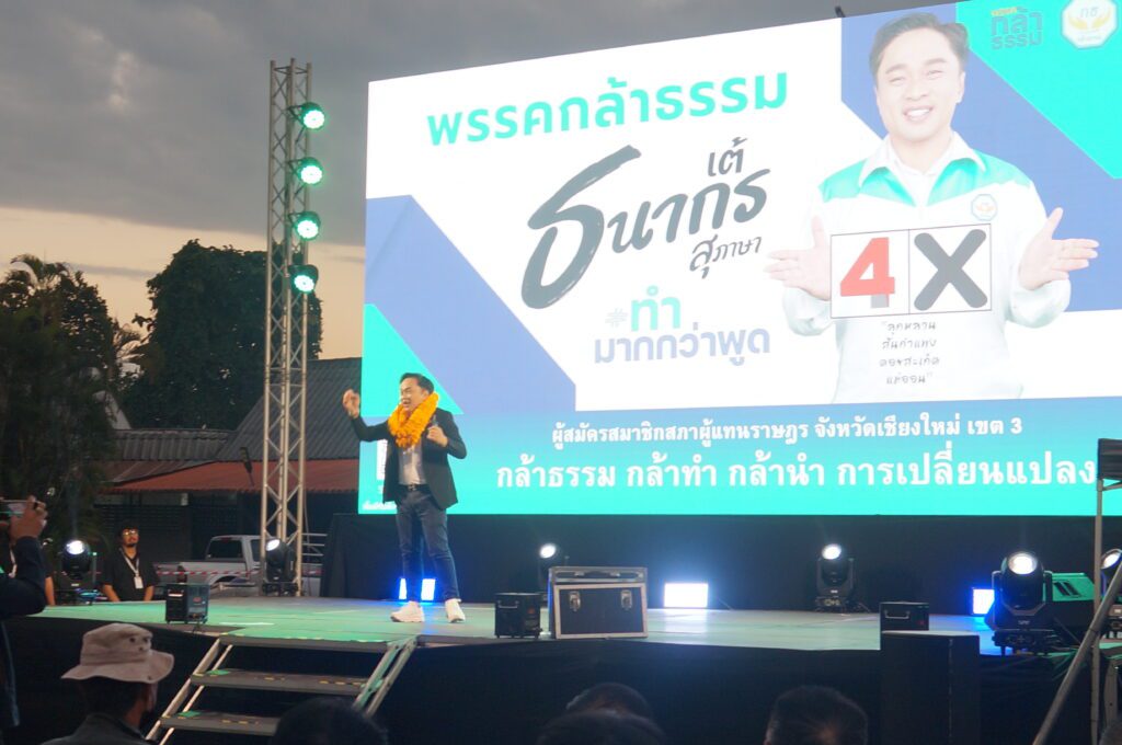 “เต้ ธนากร” เบอร์ 4 พรรคกล้าธรรม เชต 3 เชียงใหม่ ขึ้นเวทีปราศัยใหญ่ที่ ดอยสะเก็ดพลาซ่า ชูทางเลือกใหม่ “กล้าเปลี่ยน” เพื่อคนเชียงใหม่