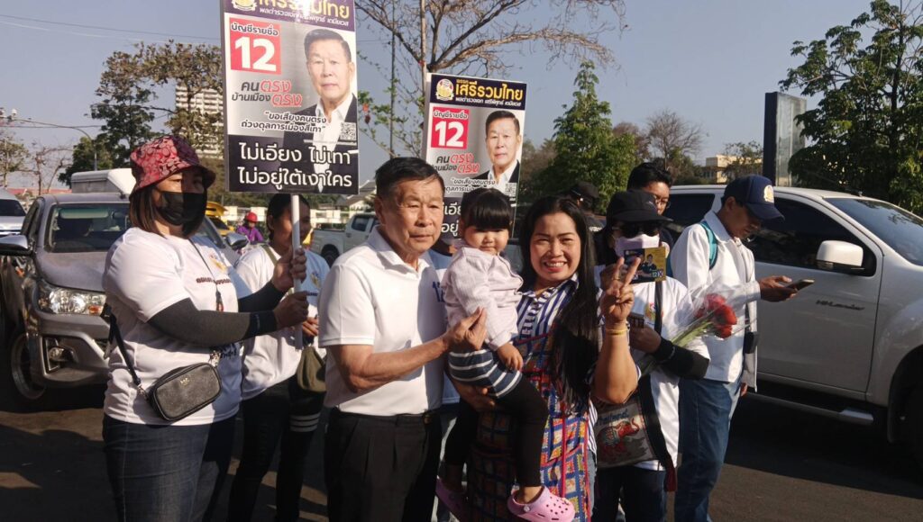พล.ต.อ.เสรีพิศุทธิ์ หัวหน้าพรรคเสรีรวมไทย เดินสายหาเสียงโค้งสุดท้ายให้ผู้สมัคร สส.ที่ตลาดวโรรส และผู้สมัคร สส.ในจังหวัดลำพูน ซึ่งก็ได้รับความใจจากเหล่าพ่อค้าแม่ค้า ที่ชื่นชอบการทำงานตรงไปตรงมาของพลตำรวจเอกเสรีพิศุทธิ์ ออกมาขอถ่ายภาพเป็นไว้เป็นที่ระลึก บางคนก็นำพวงมาลัย- ดอกไม้มามอบให้เพื่อเป็นกำลังใจ