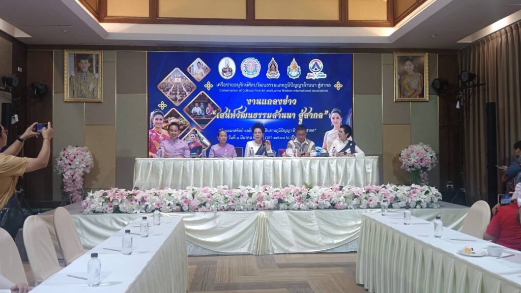 วันนี้(14 กพ.69) ที่ห้องประชุม โรงแรมสมายล์ ล้านนา อำเภอเมือง จังหัดเชียงใหม่ เครือข่ายอนุรักษ์ศิลปวัฒนธรรมและภูมิปัญญาล้านนาสู่สากลจัดแถลงข่าวงาน “เสน่ห์วัฒนธรรมล้านนาสู่สากล” โดยมีเจ้าเจือจันทร์ ณ เชียงใหม่ ประธานเครือข่ายอนุรักษ์ศิลปวัฒนธรรมและภูมิปัญญาล้านนาสู่สากลและนายพิชิตชัย เกลอดู นักวิชาการวัฒนธรรมชำนาญการพิเศษ ผู้อำนวยการกลุ่มส่งเสริมศาสนา ศิลปะและวัฒนธรรม สำนักงานวัฒนธรรมจังหวัดเชียงใหม่ตลอดจนแม่ครูพ่อครูเข้าร่วม