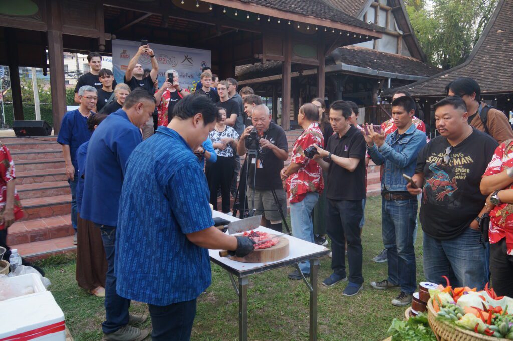 บรรยากาศภายในงานแถลงข่าวเต็มไปด้วยสีสันและกลิ่นอายวัฒนธรรมล้านนา โดยหนึ่งในไฮไลต์สำคัญคือการสาธิต “ลาบโชว์” ที่ถ่ายทอดลีลาและเสน่ห์ของการปรุงลาบเมืองแบบต้นตำรับ เรียกความสนใจจากผู้ร่วมงานได้อย่างมาก อีกทั้งยังได้รับเกียรติจาก อาจารย์โย Mr. Johannes Janzen พร้อมจิตอาสาจาก โครงการ RICD Wheelchair Project สถาบันพัฒนาการเด็กราชนครินทร์ จังหวัดเชียงใหม่ รวมถึงผู้ร่วมแสดงจากต่างประเทศ ทั้งชาวรัสเซียและชาวเวียดนาม มาร่วมโชว์ฝีมือและสร้างสีสันให้กับเวทีแถลงข่าวอย่างน่าประทับใจ