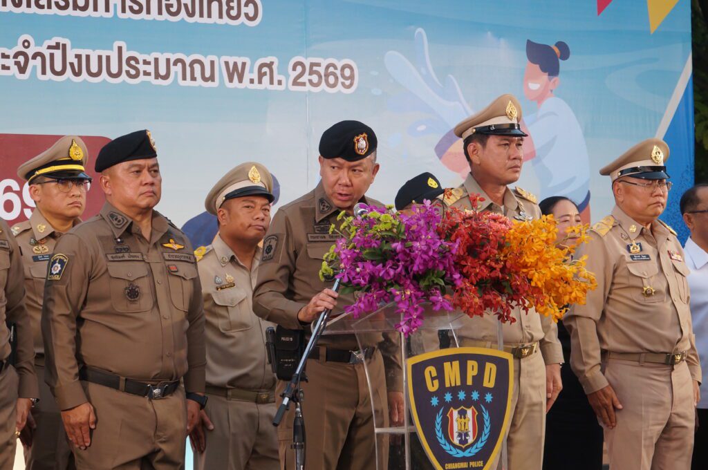 วันนี้(8 เม.ย.69) ที่ลานพระบรมราชานุสาวรีย์สามกษัตริย์ อำเภอเมืองเชียงใหม่ จังหวัดเชียงใหม่ พล.ต.ท.กฤตธาพล ยี่สาคร ผู้บัญชาการตำรวจภูธรภาค 5 เป็นประธานปล่อยแถว ระดมกวาดล้างอาชญากรรม ส่งเสริมการท่องเที่ยว และลดอุบัติเหตุทางถนน ช่วงเทศกาลสงกรานต์ 2569 โดยจังหวัดเชียงใหม่ ร่วมกับตำรวจภูธรภาค 5 ตำรวจภูธรจังหวัด เชียงใหม่ มณฑลทหารบกที่ 33 องค์การบริหารส่วนจังหวัดเชียงใหม่ เทศบาลนครเชียงใหม่ สำนักงานป้องกันและบรรเทาสาธารณภัยจังหวัดเชียงใหม่และภาคีเครือข่ายร่วมกันจัดขึ้น เพื่อเป็นการสร้างความปลอดภัยให้กับประชาชนและนักท่องเที่ยวในช่วงเทศกาลสงกรานต์ ซึ่งเป็น เทศกาลสำคัญของจังหวัดเชียงใหม่ และมีประชาชนเดินทางมาท่องเที่ยวจำนวนมากทั้งชาวไทย และต่างชาติ เป็นอีกหนึ่งเทศกาลที่นักท่องเที่ยวรอคอย